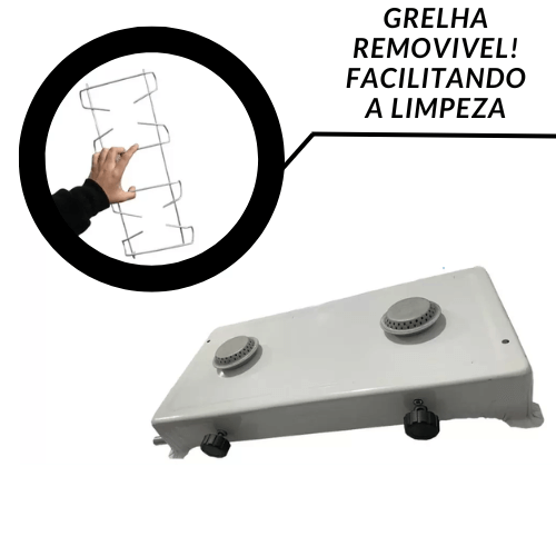Desenvolvido para diversas ocasiões, camping, pescarias, caminhoneiros.Material de ótima qualidade, super prático, resistente e design moderno. Material de ferro, possui 2 bocas com baixa pressão e a gás.